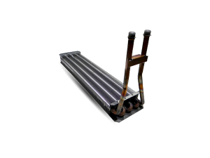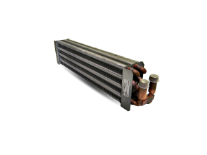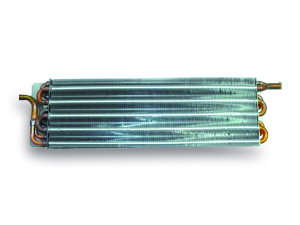A water heating radiator has the same characteristics as an evaporating coil, with the difference that the radiator includes, for the heating function, only the circuit with the passage of the glycol solution.