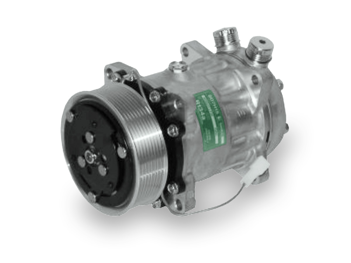 Compressore Sanden SD7H15 155cc Poly V8 di 123mm 12 Volt, attacchi verticali Rotalok da 1".